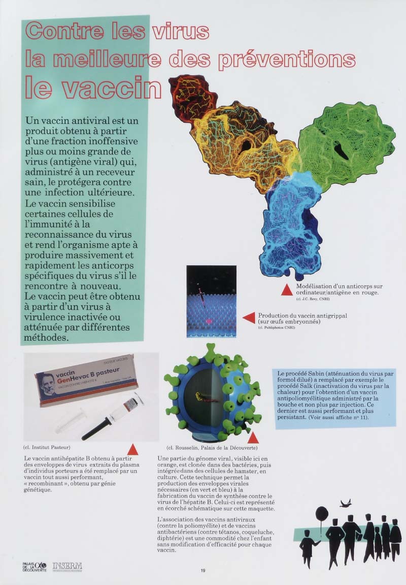 Véritables poisons de tout le monde vivant, les virus sont responsables de terribles maladies: rage, grippe, SIDA, hépatite. Face à ces fléaux, l'information et la prévention sont de toute première importance. Cette exposition, très didactique et abondamment illustrée, donne les éléments de réponse pour connaître et combattre ces ennemis de toujours.